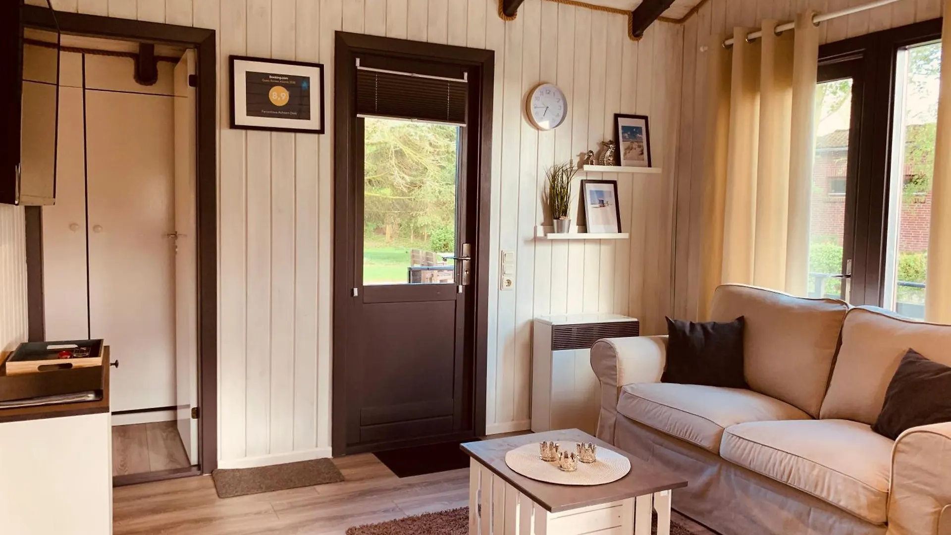 Die 1-Zimmer- Ferienhaus Achtern Diek Emmelsbüll-Horsbüll verfügt über ein Privatparkplatz und eine Terrasse mit Aussicht auf den Garten.
