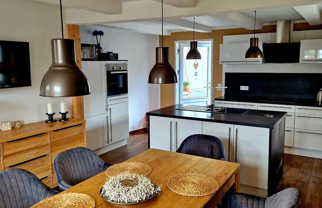 Diese Unterkunft in Thale ist mit einer voll ausgestatteten Küchenzeile sowie einem Wasserkocher, einem Kühlschrank und einem Herd ausgestattet.