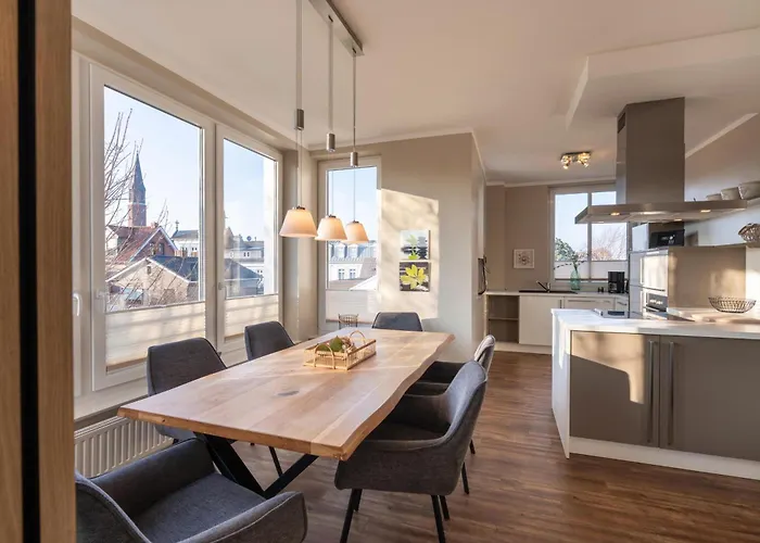 Die InselLoft Wohnung 1 bietet eine hundefreundliche Unterkunft und liegt nur 700 m von Nordbad entfernt. Gäste können bequem mit ihren Haustieren die Umgebung erkunden. Die Ausstattung mit WLAN und einer modernen Küchenzeile ermöglicht einen entspannten Aufenthalt mit allem Komfort. Die zentrale Lage bietet einfachen Zugang zu Stränden und Freizeitmöglichkeiten, sodass jeder das Die besten aus ihrem Urlaub herausholen kann.