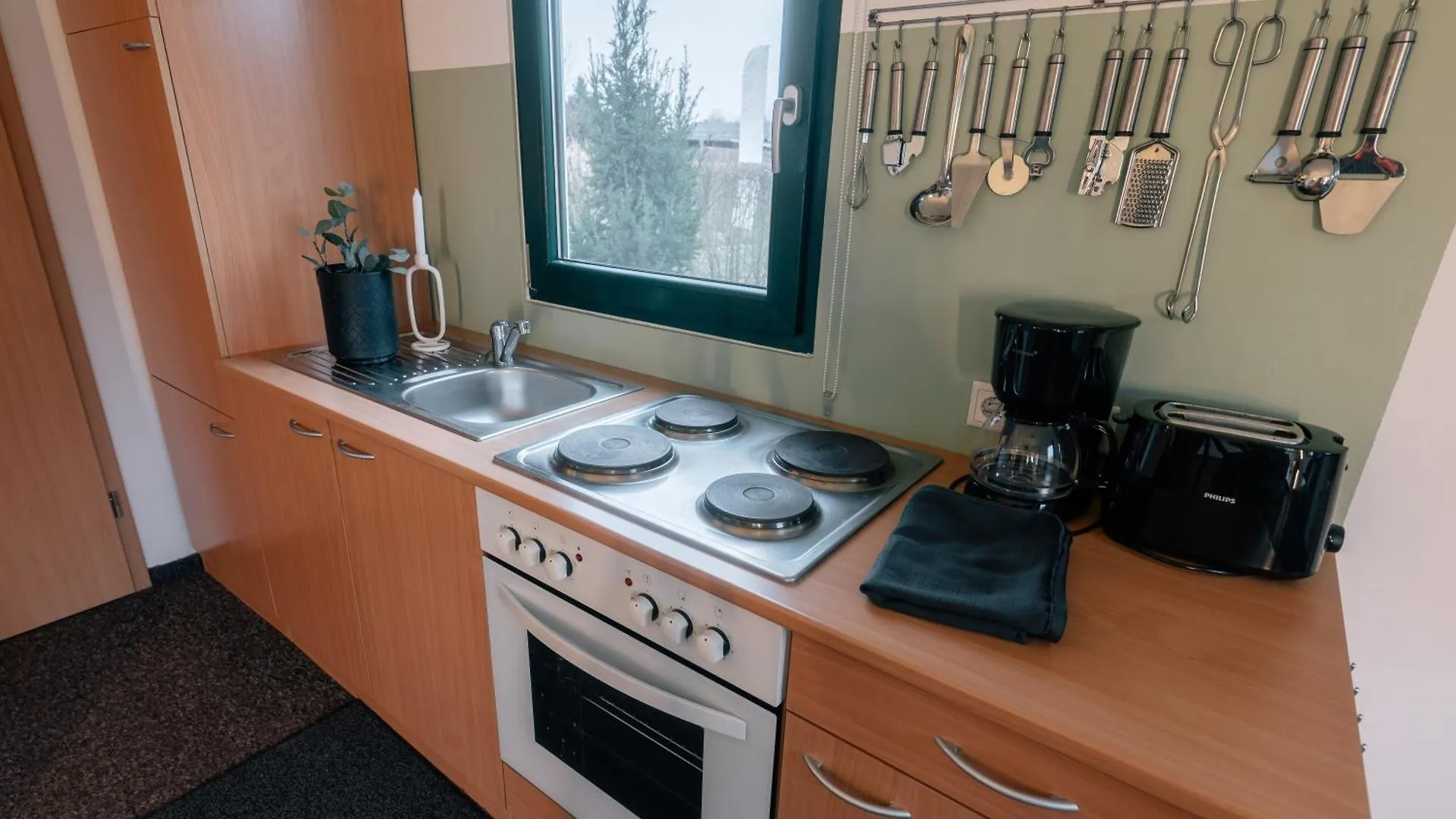 Die Villa in Dessau-Rosslau hat eine voll ausgestattete Küche mit einem Wasserkocher, einem Kühlschrank und Küchenutensilien. Das Restaurant Luise Café & Eissalon liegt ziemlich nah an der Das Schlafgut Dessau Bungalows und bietet Delhi- Küche.