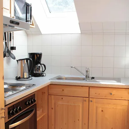 In der Villa in Ilsenburg gibt es auch eine Küchenzeile, die mit einem Wasserkocher, einem Kühlschrank und einem Herd ausgestattet ist.