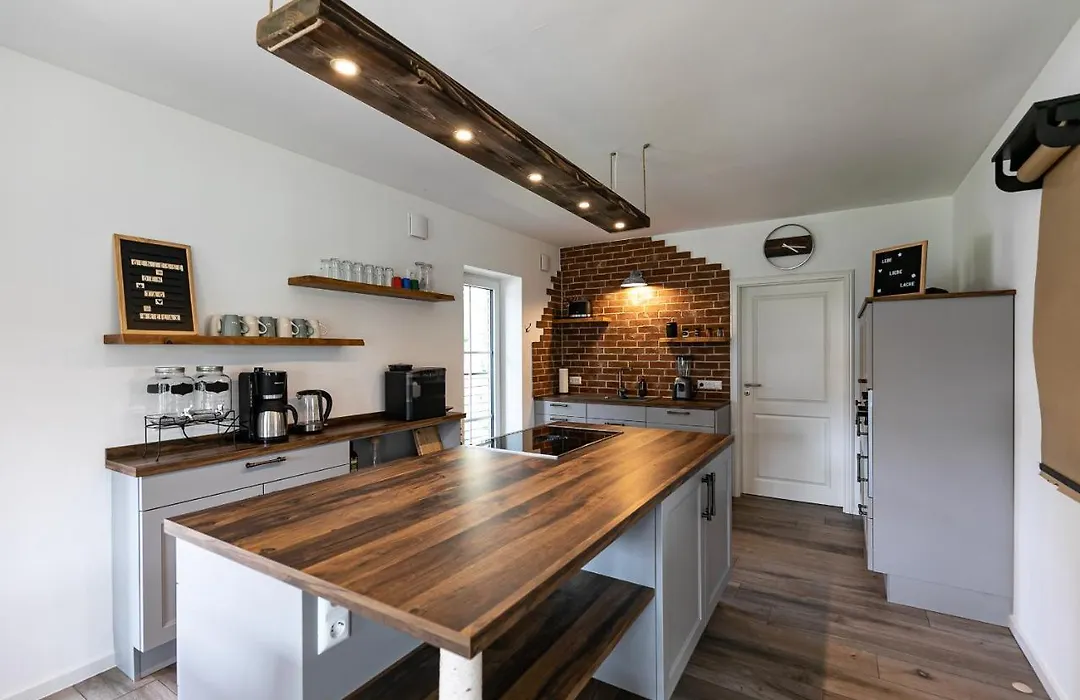 In der Ferienhaus Heuliebe gibt es für Selbstversorger einen Wasserkocher, einen Kühlschrank und einen Herd, die in einer voll ausgestatteten Küchenzeile zur Verfügung stehen.