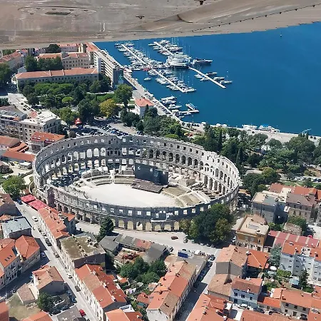 Medulin bietet eine ausgezeichnete Auswahl an Unterkünften, darunter zahlreiche Ferienhäuser mit Pools, die einen perfekten Rückzugsort für Familien und Gruppen darstellen. Reisen Sie bequem mit dem Auto oder nutzen Sie die optimale Anbindung sowohl zum Strand Bijeca als auch zum historischen Amphitheater Pula, das nur 11 Kilometer entfernt ist.