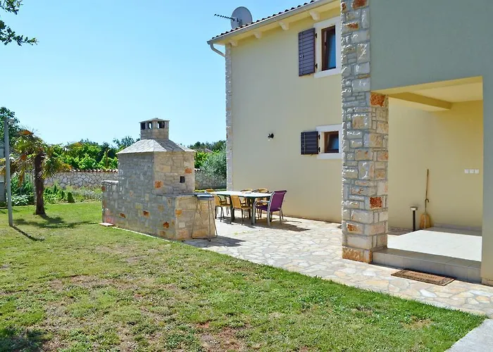 Holiday Home In Medulin - Istrien 9006 verfügt über eine Terrasse mit Blick auf den Garten und bietet eine Familienfreundliche Umgebung. Die Unterkunft hat vier Schlafzimmer und bietet eine voll ausgestattete Küche. Für Grillabende steht ein Grillplatz zur Verfügung. Die Lage ist ideal für Tagesausflüge in die Umgebung, da die Villa nur 11 km vom historischen Amphitheater Pula entfernt ist. Der Flughafen Pula ist in 15 Minuten erreichbar.